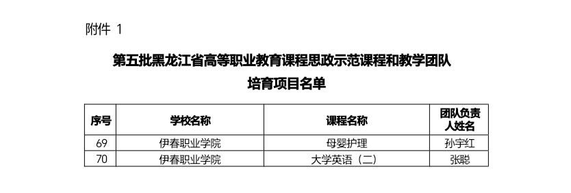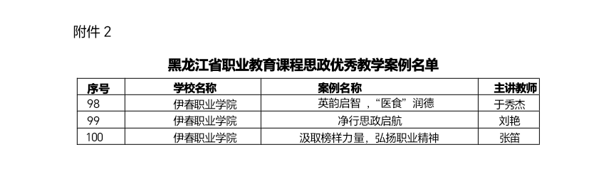 近日,黑龍江省教育廳發(fā)布了《關(guān)于公布省級(jí)第五批職業(yè)教育(繼續(xù)教育)課程思政示范課程和教學(xué)團(tuán)隊(duì)培育項(xiàng)目及優(yōu)秀教學(xué)案例的通知》,我校孫宇紅團(tuán)隊(duì)的《母嬰護(hù)理》和張聰團(tuán)隊(duì)的《大學(xué)英語(二)》2個(gè)項(xiàng)目獲高等職業(yè)教育課程思政示范課程和教學(xué)團(tuán)隊(duì)培育項(xiàng)目;于秀杰老師的《英韻啟智 ,“醫(yī)食”潤德》、劉艷老師的《凈行思政啟航》、張笛老師的《汲取榜樣力量,弘揚(yáng)職業(yè)精神》3個(gè)案例獲得高等職業(yè)教育課程思政優(yōu)秀教學(xué)案例。