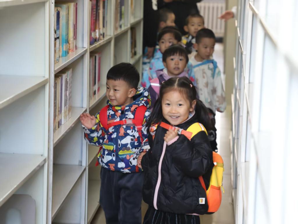 小朋友們走進校圖書館,在工作人員的帶領下參觀借閱區(qū)、閱覽室。孩子們親手觸摸精美的書籍,聽著圖書館老師聲情并茂地講解,他們踴躍互動,現(xiàn)場歡聲不斷。“我以后要常來圖書館,這里像一座魔法城堡!”小朋友興奮地說道。
