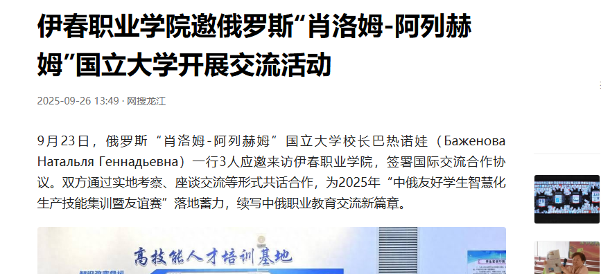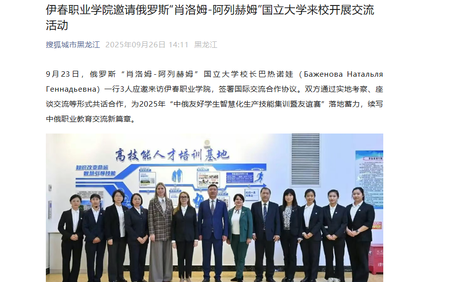 伊春職業(yè)學(xué)院與“肖洛姆-阿列赫姆”國立大學(xué)的友好往來始于2017年。從聯(lián)合參與國際大學(xué)生體育節(jié)、開展教育科研交流,到如今深化技能集訓(xùn)合作,雙方已構(gòu)建起多維度交流格局。