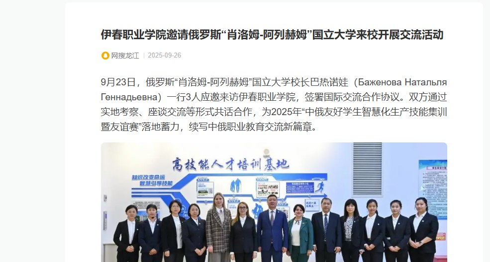 此次交流既是對兩校多年友好合作的延續(xù),更是雙方“技能共訓(xùn)、文化共融、友誼共建”的生動實踐。未來,雙方將以技能合作為紐帶,持續(xù)推進(jìn)師生互訪、學(xué)術(shù)研討、海外實習(xí)等多元化合作項目,為中俄邊境地區(qū)教育交流與人才培養(yǎng)注入新活力,為“職教出?!睉?zhàn)略增添新動能。