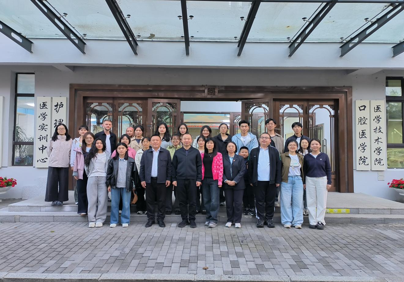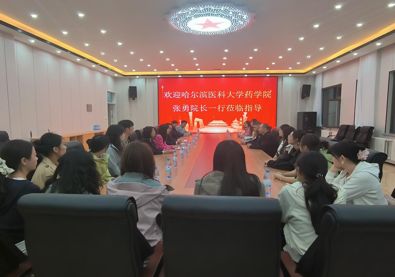為進(jìn)一步深化校際合作,推動(dòng)藥學(xué)專(zhuān)業(yè)高質(zhì)量發(fā)展,10月2日,哈爾濱醫(yī)科大學(xué)藥學(xué)院院長(zhǎng)張勇教授帶領(lǐng)其研究生團(tuán)隊(duì)一行25人到我院考察交流。醫(yī)學(xué)技術(shù)學(xué)院黨支部書(shū)記孫曉會(huì)、院長(zhǎng)韓金華、醫(yī)學(xué)實(shí)訓(xùn)中心主任馬玄及藥學(xué)專(zhuān)業(yè)負(fù)責(zé)人王婷等參加交流活動(dòng)。