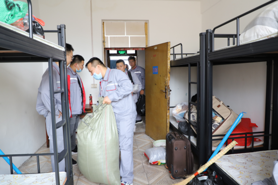 新生們來到建龍西鋼,按照宿舍名單有序進入宿舍,寢室長組織學生們整理內務。