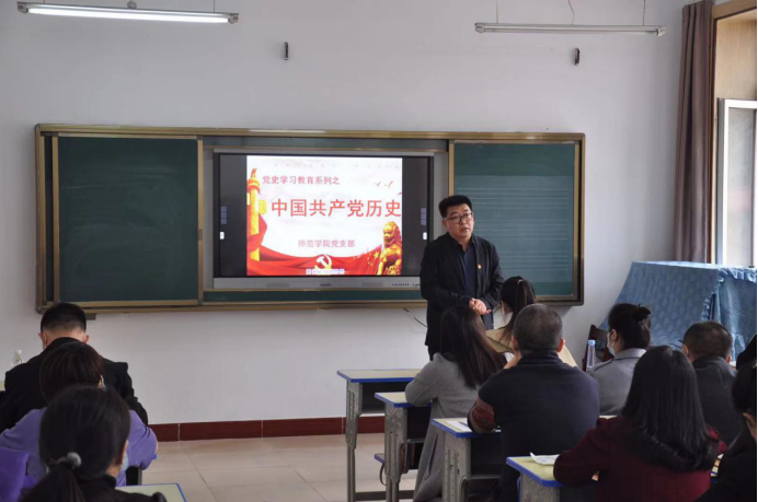 按照學(xué)院黨史學(xué)習(xí)教育工作部署,4月2日下午,師范學(xué)院黨支部負(fù)責(zé)人王海峰同志以《中國(guó)共產(chǎn)黨歷史》為題,為支部全體黨員和入黨積極分子作了一堂生動(dòng)精彩的黨史知識(shí)輔導(dǎo)。