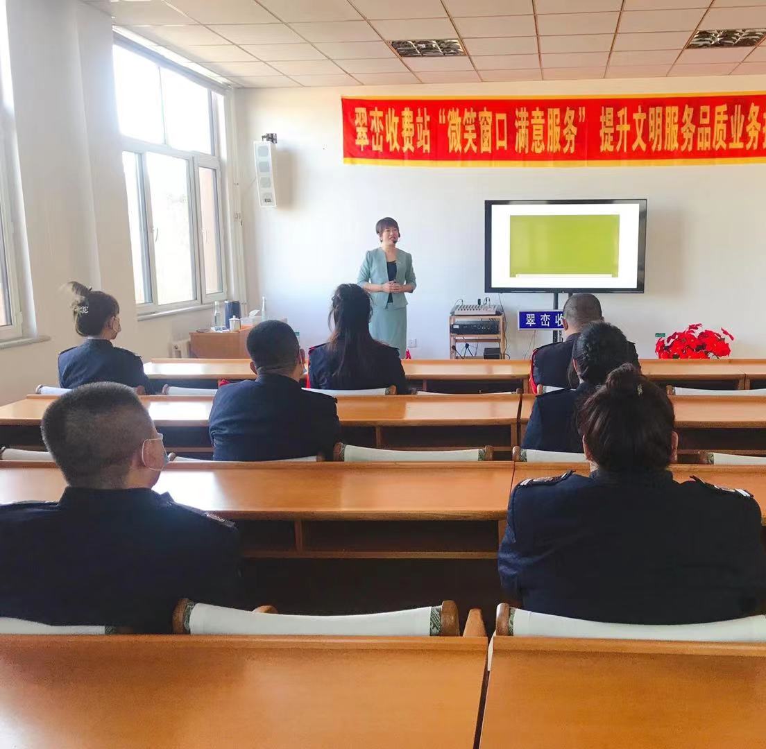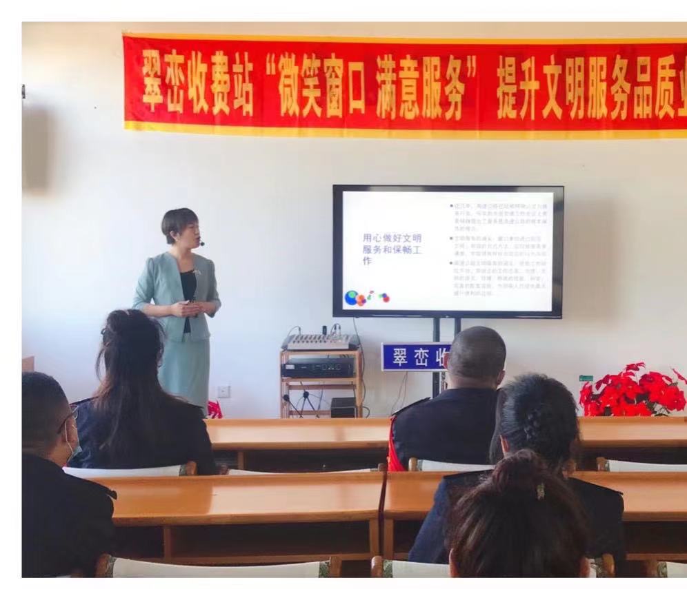 2021年,是中國(guó)共產(chǎn)黨成立100周年的重要?dú)v史時(shí)刻,黨中央把開展“我為群眾辦實(shí)事”實(shí)踐活動(dòng)作為黨史學(xué)習(xí)教育重要內(nèi)容。旅游商務(wù)學(xué)院黨員教師汪雯雯發(fā)揮自身專業(yè)優(yōu)勢(shì),于2021年10月20日為翠巒收費(fèi)站干部職工和窗口服務(wù)人員,提供了服務(wù)禮儀培訓(xùn),把為群眾辦實(shí)事落到實(shí)處。