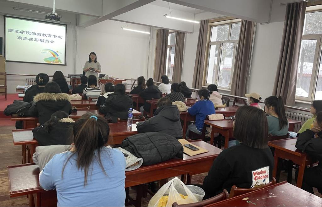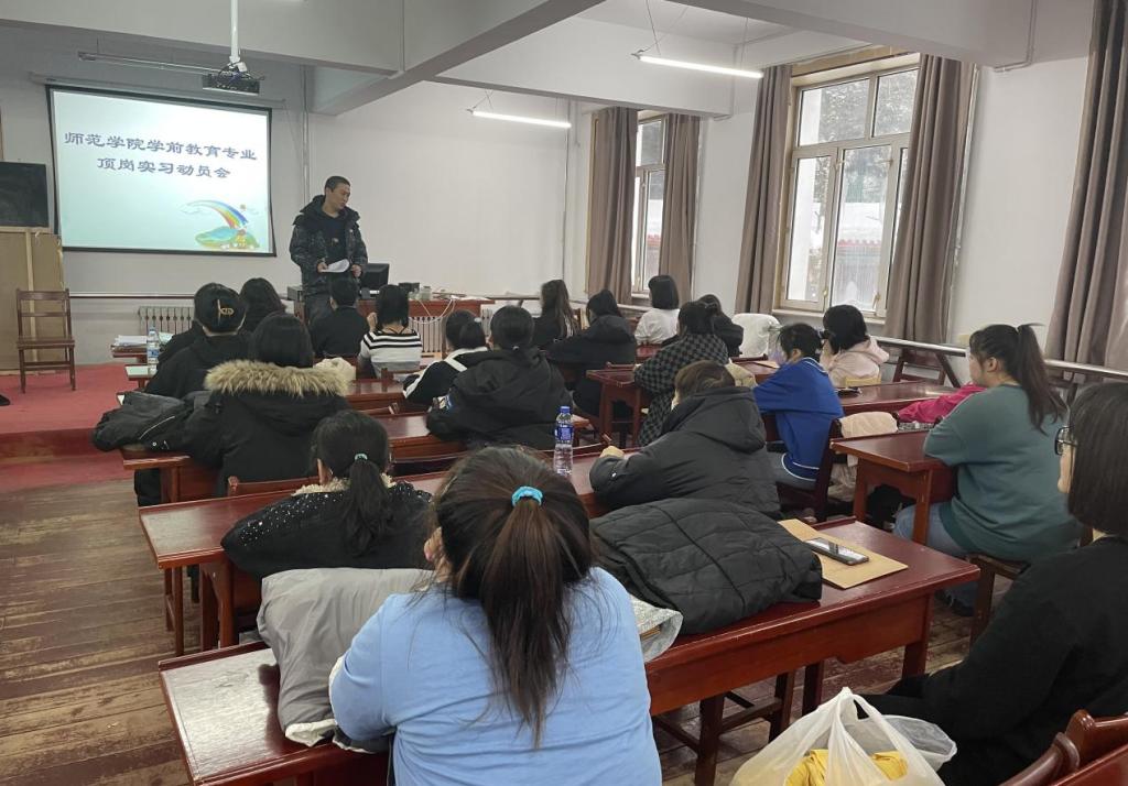 為做好2019級、2017級(五)學前教育專業(yè)頂崗實習工作,12月10日下午,師范學院在多媒體教室召開學前教育專業(yè)頂崗實習動員大會。院長王海峰、副書記張健、學前教研室主任王紅及輔導(dǎo)員張麗娜出席了此次大會。即將奔赴北京、上海、深圳等地頂崗實習的71名學生參加了此次大會。
