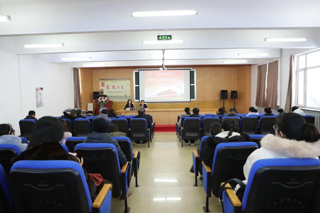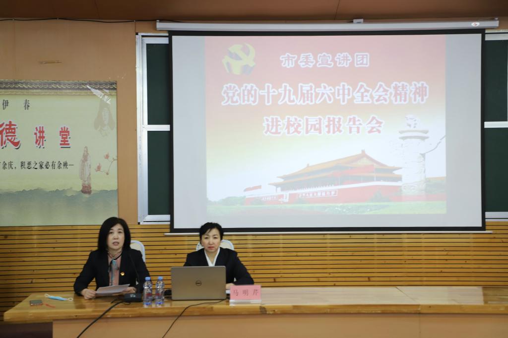 12月22日下午,根據(jù)市委統(tǒng)一安排部署,市委宣講團成員、伊春市委黨校副教授馬明芹老師, 來我校作題為《勿忘昨天、無愧今天、不負明天 ——學習貫徹黨的十九屆六中全會精神》的宣講報告。學校宣傳部長韋立宏主持會議,黨委副書記王鳳華、各支部書記、黨員干部近50人參加報告會。