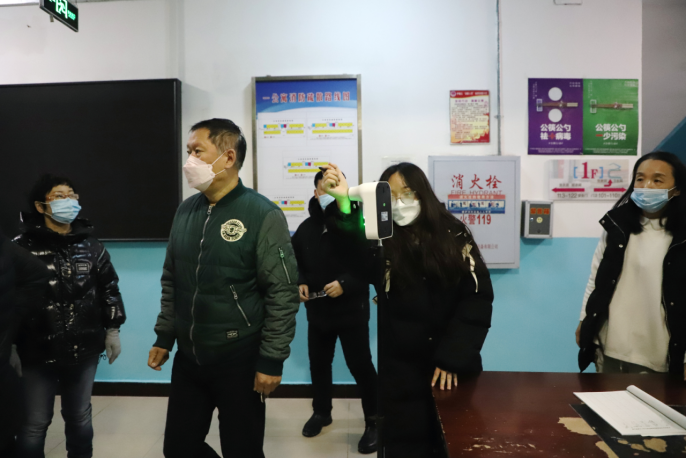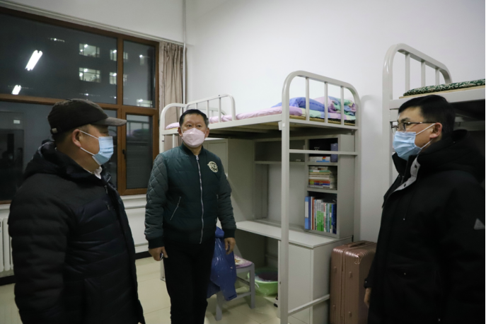 校領(lǐng)導(dǎo)一行來到學(xué)生公寓,現(xiàn)場查看入口管理、掃碼測溫、寢室衛(wèi)生、應(yīng)急處置等防控措施落實情況,詳細(xì)了解公寓日常衛(wèi)生防疫與消毒工作開展、供電供暖及學(xué)生返校情況。