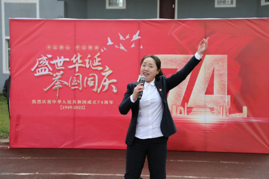 校團(tuán)委宣傳委員王洋老師代表青年教師發(fā)言。國(guó)旗下她對(duì)祖國(guó)、對(duì)人民做出了承諾:一是要樹(shù)立目標(biāo),爭(zhēng)做時(shí)代浪頭的奮斗者。為黨育人、為國(guó)育才。二是堅(jiān)定執(zhí)著,爭(zhēng)做攻堅(jiān)克難的擔(dān)當(dāng)者。在教書育人這條路上勇于拼搏,將拼搏進(jìn)取化作青年教師最響亮的誓言。三是不忘初心,爭(zhēng)做心懷家國(guó)的奉獻(xiàn)者。在未來(lái),我們青年教師將永葆奮斗初心,無(wú)論風(fēng)雨,都守望麥田,牢記使命。