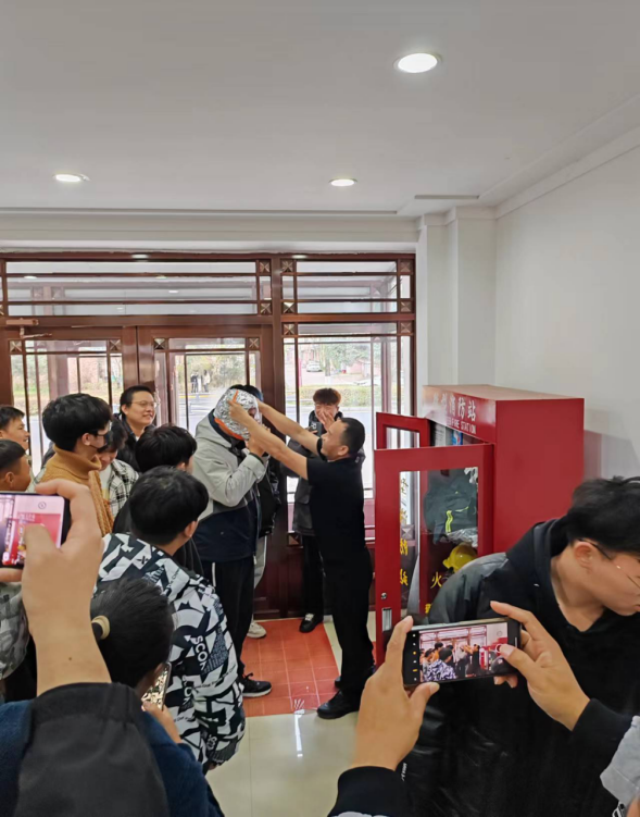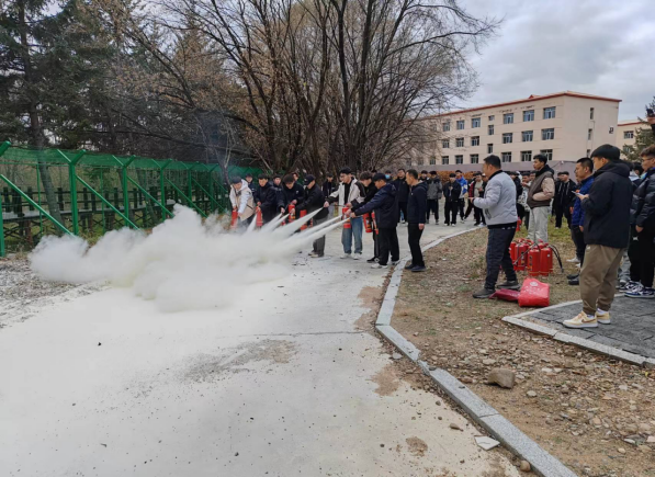 隨后由保衛(wèi)處程生志為同學(xué)們講解了公寓內(nèi)消防栓和微型消防柜的使用方法,同學(xué)們聽(tīng)的十分認(rèn)真,并有同學(xué)積極參與滅火設(shè)備的模擬使用。在滅火器實(shí)操及模擬訓(xùn)練現(xiàn)場(chǎng),程生志首先向同學(xué)們講解了干粉滅火器的工作原理、使用方法及注意事項(xiàng),并在鐵盆中點(diǎn)燃明火示范滅火,隨后指導(dǎo)學(xué)生分組進(jìn)行滅火實(shí)際操作,同學(xué)們基本掌握了干粉滅火器的使用方法。