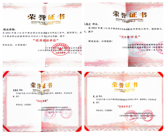近日,根據(jù)《關(guān)于表彰教育部1+X空中乘務(wù)職業(yè)技能等級證書2023年優(yōu)秀工作單位及先進(jìn)個(gè)人的決定》,由教育部指定的第三方評價(jià)組織江蘇無國界航空發(fā)展有限公司對教育部1+X空中乘務(wù)職業(yè)技能等級證書2023年度優(yōu)秀組織單位、優(yōu)秀考核站點(diǎn)、優(yōu)秀考評員、先進(jìn)工作者等進(jìn)行表彰。我校被評為優(yōu)秀組織單位、王寶才、夏巖兩位考評員老師被評為優(yōu)秀考評員,王寶才在2023年度考評工作中,考評能力突出,成績顯著,被授予“先進(jìn)工作者”榮譽(yù)稱號(hào)。