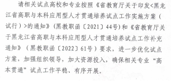 據(jù)悉,“高本貫通”試點(diǎn)工作是我省加快完善現(xiàn)代職教體系、搭建高本貫通培養(yǎng)立交橋、服務(wù)學(xué)生可持續(xù)的重要舉措,對(duì)于打通技術(shù)技能人才培養(yǎng)學(xué)歷上升通道、探索本科教育貫通培養(yǎng)機(jī)制具有重要意義。