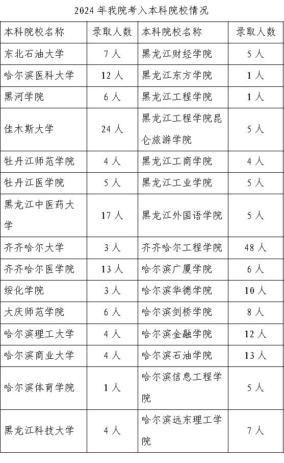 心田耕耘有矢志,碩果飄香又一年。在2024年黑龍江省專升本考試中,我院248名同學(xué)以優(yōu)異的成績(jī)順利被本科院校錄取,錄取總?cè)藬?shù)創(chuàng)歷史新高。