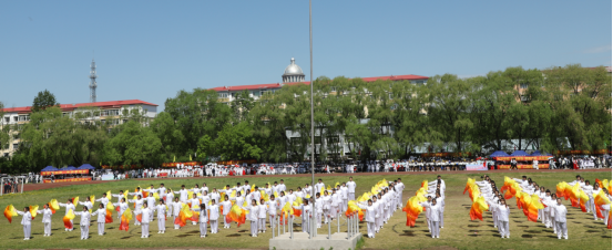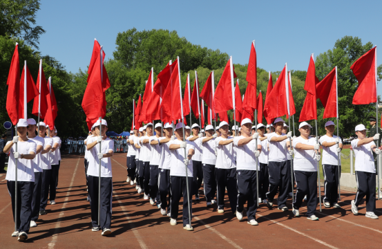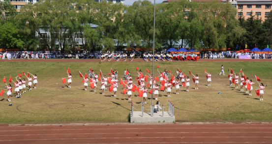 鮮艷的五星紅旗在運(yùn)動場上高高飄揚(yáng)