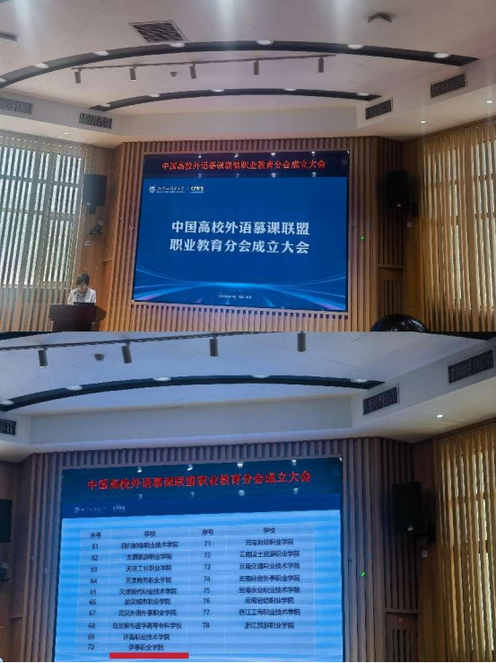 為全面貫徹落實(shí)黨的二十大精神,落實(shí)中共中央辦公廳、國務(wù)院辦公廳《關(guān)于推動(dòng)現(xiàn)代職業(yè)教育高質(zhì)量發(fā)展的意見》和《關(guān)于深化現(xiàn)代職業(yè)教育體系建設(shè)改革的意見》,助推職業(yè)教育精品在線課程共享應(yīng)用,提升數(shù)字資源教育教學(xué)、人才培養(yǎng)的效用,2024年6月,中國高校外語慕課聯(lián)盟職業(yè)教育分會(huì)正式成立。公共教學(xué)部經(jīng)過前期申報(bào)、條件選拔,助力我校成為中國高校外語慕課聯(lián)盟職教分會(huì)成員單位,全國共有78所高職院校獲此殊榮。