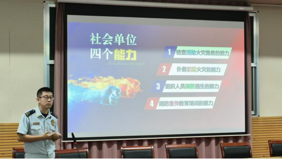 于性偉參謀憑借豐富的專業(yè)知識(shí)和實(shí)踐經(jīng)驗(yàn),通過(guò)生動(dòng)的案例和形象的講解,向大家介紹了火災(zāi)的危害、常見的火災(zāi)原因、預(yù)防火災(zāi)的方法以及在火災(zāi)發(fā)生時(shí)如何正確逃生等重要內(nèi)容。師生們?nèi)褙炞⒌伛雎?,積極參與互動(dòng),現(xiàn)場(chǎng)氣氛熱烈。
