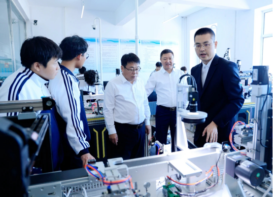 苑芳江還走進智能生產(chǎn)線實訓基地,現(xiàn)場觀摩學生實訓情況,勉勵同學們要胸懷大志、志存高遠,把個人理想與國家命運緊密聯(lián)系在一起,認真學習,苦練本領,爭取早日學業(yè)有成,為中國式現(xiàn)代化建設貢獻智慧力量。他強調,教育、科技、人才是中國式現(xiàn)代化的基礎性、戰(zhàn)略性支撐,要充分發(fā)揮高校學科支撐作用,積極搭建產(chǎn)學研協(xié)同育人平臺,創(chuàng)新人才培養(yǎng)模式,為伊春高質量轉型發(fā)展培養(yǎng)更多具有現(xiàn)代工匠精神的技能型人才。