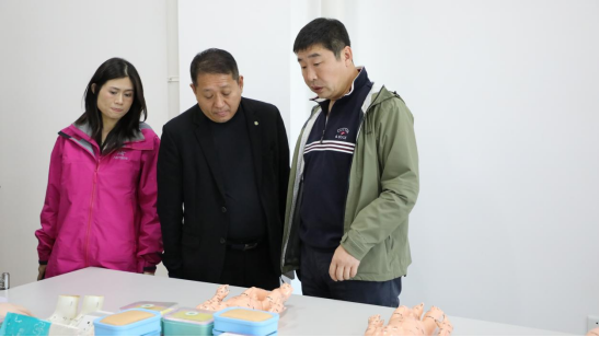 代表團(tuán)一行參觀了醫(yī)學(xué)實訓(xùn)樓口腔醫(yī)學(xué)實訓(xùn)基地、生命科學(xué)館、老年照護(hù)實訓(xùn)基地、臨床護(hù)理、母嬰照護(hù)實訓(xùn)基地、醫(yī)學(xué)技術(shù)及中醫(yī)康復(fù)實訓(xùn)基地。一行人實地了解我校醫(yī)學(xué)專業(yè)建設(shè)情況,詳細(xì)探討專業(yè)布局與對外合作進(jìn)展。代表團(tuán)高度認(rèn)可我校教學(xué)實訓(xùn)設(shè)施建設(shè),充分肯定專業(yè)辦學(xué)能力。