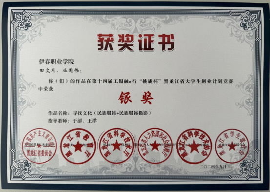 伊春職業(yè)學院計算機應用技術學院電子商務專業(yè)學生田文月、叢國偉的《尋找文化(民族服飾+民族服飾攝影)》經過專家評審團嚴格評審和激烈比拼,最終榮獲省賽銀獎!實現(xiàn)我?!疤魬?zhàn)杯”參賽獲獎零突破!