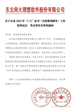 現(xiàn)已完成7名專(zhuān)職教師培訓(xùn)師資考核,全部獲得考評(píng)員資質(zhì)。7名專(zhuān)職教師獲得“1+X”生涯規(guī)劃指導(dǎo)職業(yè)技能等級(jí)證書(shū)(中級(jí))證書(shū)。完成1088名學(xué)生參加教育部“生涯規(guī)劃指導(dǎo)”1+X證書(shū)(初級(jí))的培訓(xùn)與考核。評(píng)價(jià)組織方給予高度評(píng)價(jià):伊春職業(yè)學(xué)院為本證書(shū)的全國(guó)經(jīng)典案例。同時(shí)被評(píng)為:2022年“1+X”證書(shū)《生涯規(guī)劃指導(dǎo)》工作優(yōu)秀試點(diǎn)、考點(diǎn)單位。