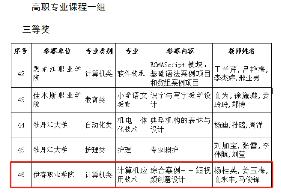 根據(jù)《關于舉辦2024年黑龍江省職業(yè)學校技能大賽教學能力比賽暨國賽選拔賽的通知》要求,學校相關部門協(xié)同配合、參賽團隊積極備戰(zhàn)、深度凝練教學特色、精心設計教學環(huán)節(jié),以教育家精神為引領不斷研磨參賽作品,力求精益求精。經(jīng)學校自主申報,專家網(wǎng)絡初評和現(xiàn)場決賽,我校再獲佳績!