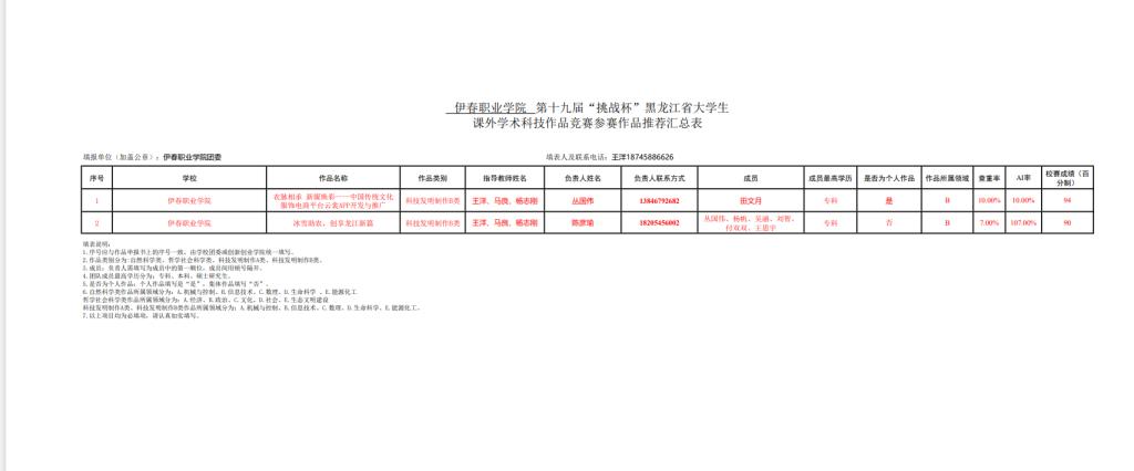 按照全國組委會《“挑戰(zhàn)杯”全國大學(xué)生課外學(xué)術(shù)科技作品競賽章程》相關(guān)要求,面向各學(xué)院發(fā)布校級比賽通知。本著公平、公正、公開的原則,經(jīng)項目團隊申報,校級評審,2025年“挑戰(zhàn)杯”大學(xué)生課外學(xué)術(shù)科技作品競賽最終確定2項作品推薦省賽。