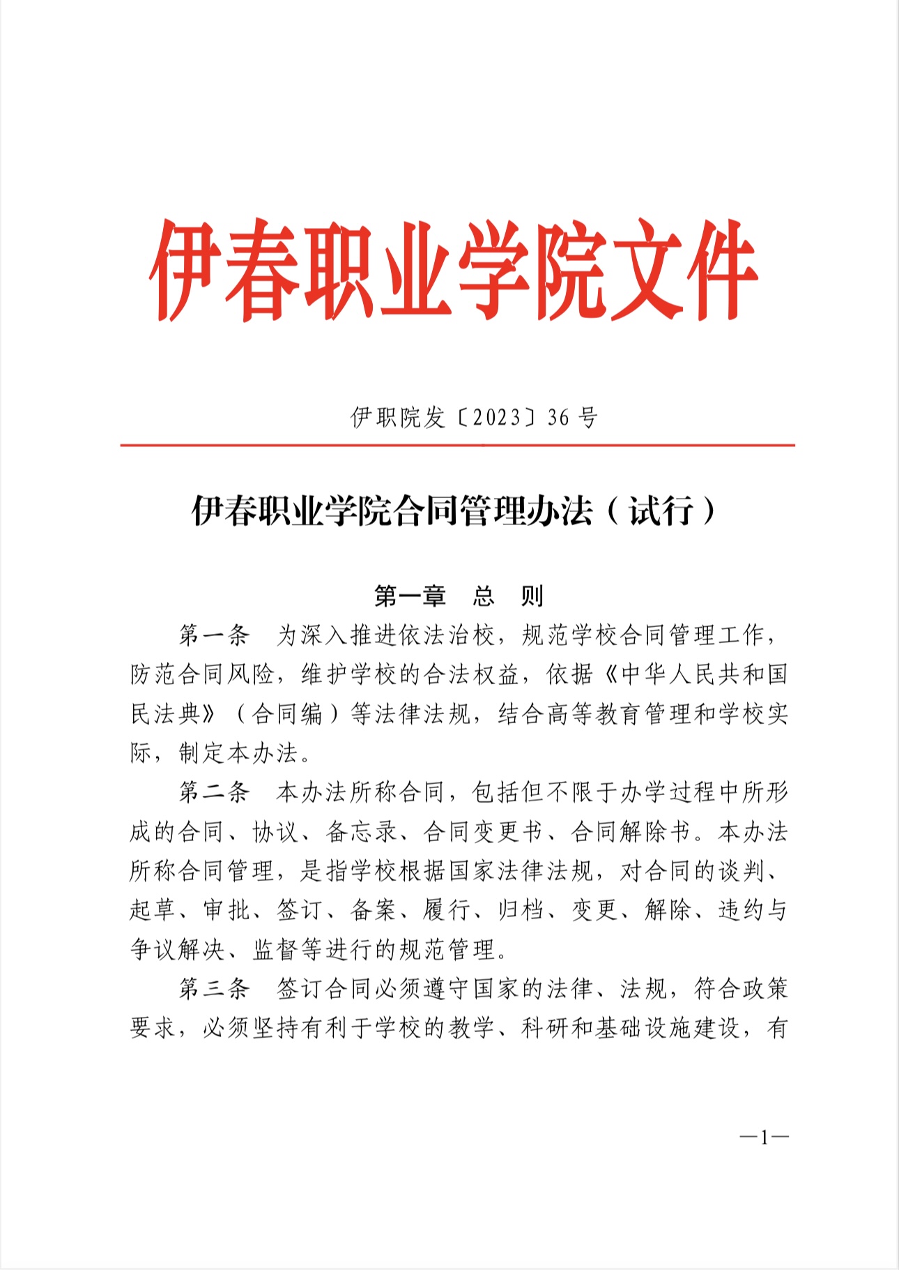 伊春職業(yè)學院合同管理辦法(試行)