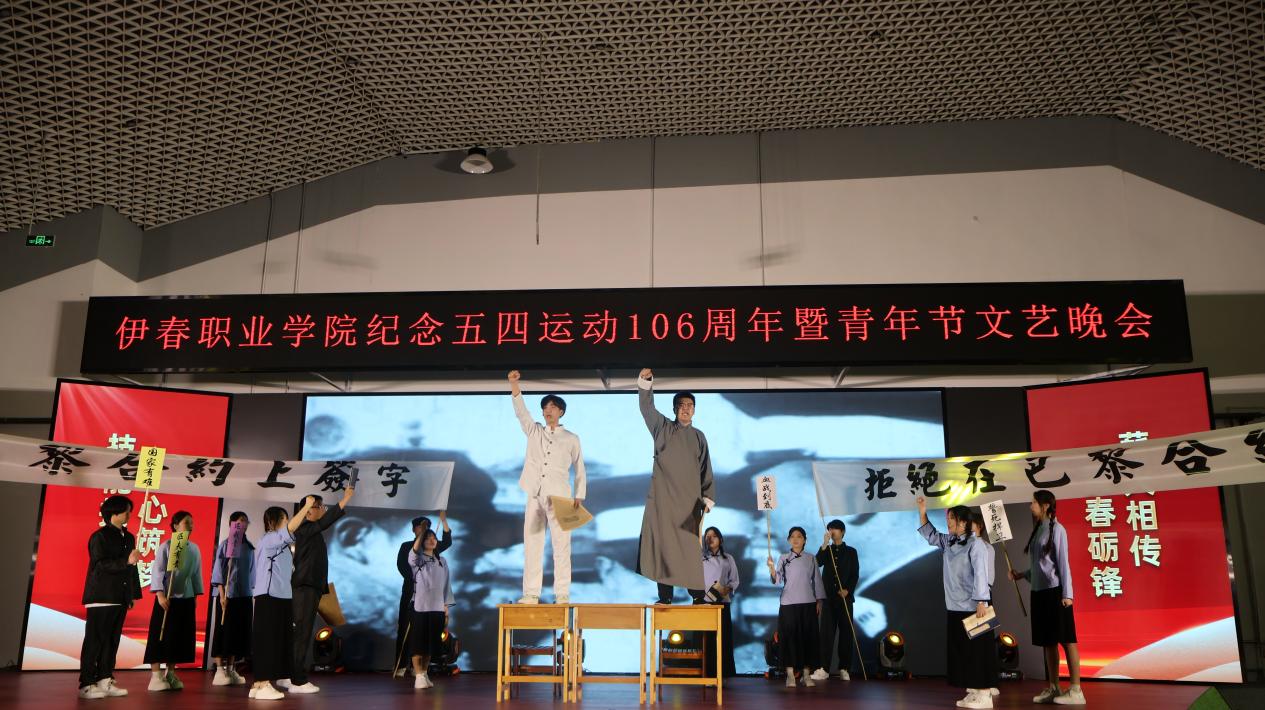 崢嶸歲月,韶光似箭;逐夢(mèng)青春,風(fēng)華正茂。為紀(jì)念五四運(yùn)動(dòng)106周年,傳承歷久彌新的五四精神,展現(xiàn)新時(shí)代青年的青春風(fēng)采,4月29日晚,伊春職業(yè)學(xué)院舉辦“傳承五四精神 青春挺膺擔(dān)當(dāng)”紀(jì)念五四運(yùn)動(dòng)106周年暨青年節(jié)文藝晚會(huì)。團(tuán)市委相關(guān)領(lǐng)導(dǎo),伊春職業(yè)學(xué)院黨委班子成員,各部門負(fù)責(zé)人,二級(jí)學(xué)院(部)黨支部書記、院長(zhǎng)及全體學(xué)工人員出席活動(dòng)。來自我校近千余名師生雅集一堂,共同以藝術(shù)之名致敬歷史,以青春之力續(xù)寫華章。