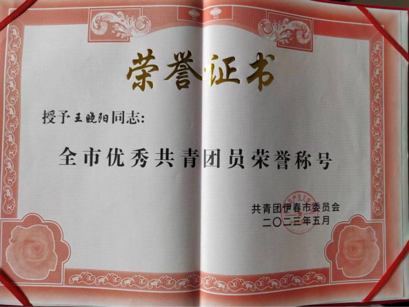 計算機應(yīng)用技術(shù)學(xué)院團總支書記、輔導(dǎo)員王洋榮獲2023年伊春市“勤奮上進好青年”榮譽稱號。
