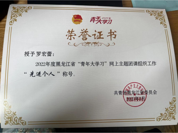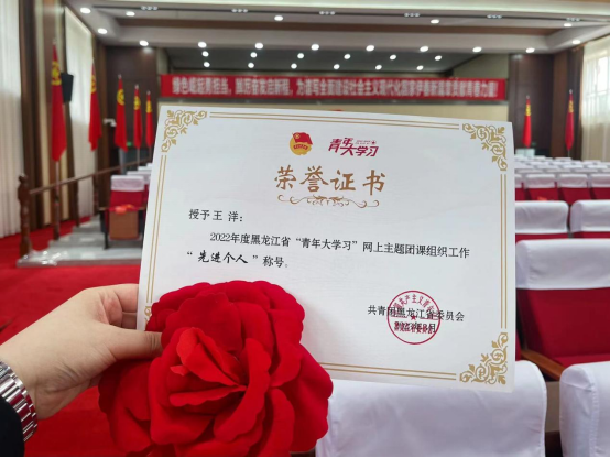 計算機應(yīng)用技術(shù)學(xué)院團總支書記、輔導(dǎo)員王洋榮獲2022年度黑龍江省“青年大學(xué)習(xí)”網(wǎng)上主題團課組織工作“先進個人”稱號