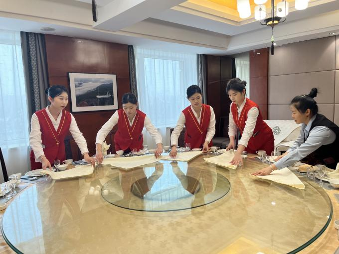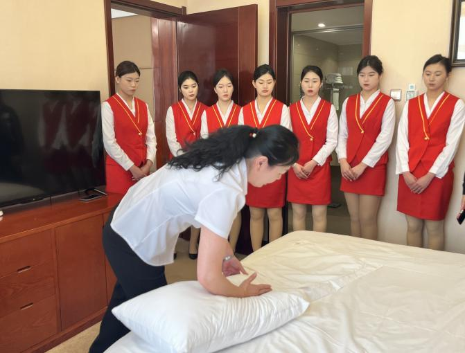 伊春城茂國錦酒店隸屬于哈爾濱城投集團(tuán),是伊春地區(qū)高端會議型度假酒店。首先,雙方進(jìn)行了簡短的座談,伊春城茂國錦酒店總經(jīng)理於雪飛學(xué)院師生一行的到來表示熱烈歡迎,他簡要介紹了酒店的基本情況、發(fā)展前景和能夠?yàn)閷W(xué)院旅游專業(yè)提供的實(shí)習(xí)就業(yè)崗位。旅游商務(wù)學(xué)院院長趙莉莉也對於總的熱情接待表示感謝,簡要的介紹了學(xué)院的師資隊(duì)伍、專業(yè)建設(shè)和人才培養(yǎng)等基本情況,并對今后雙方在更多領(lǐng)域的合作寄予了美好愿景。會后,於總和部門經(jīng)理一同帶領(lǐng)學(xué)院師生參觀了餐飲區(qū)、客房區(qū)、前臺接待區(qū),并在相應(yīng)的區(qū)域做了工作介紹和示范操作。