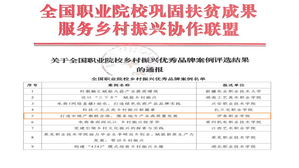 我校高教研究室積極組織發(fā)動(dòng)教師撰寫(xiě)案例參加聯(lián)盟2025年1月組織開(kāi)展的全國(guó)職業(yè)院校鄉(xiāng)村振興優(yōu)秀品牌案例評(píng)選活動(dòng)。經(jīng)聯(lián)盟組織專(zhuān)家從問(wèn)題的普遍性、模式舉措的可推廣性、實(shí)踐成效、示范輻射等方面進(jìn)行評(píng)選。我校報(bào)送的《打造市域產(chǎn)教聯(lián)合體,服務(wù)地方產(chǎn)業(yè)高質(zhì)量發(fā)展》被評(píng)選為優(yōu)秀品牌案例。