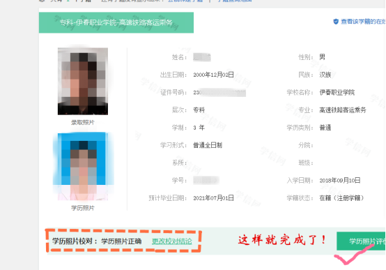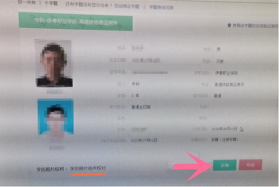 采集照片的學(xué)生,請(qǐng)于2023年12月1日后用曾注冊(cè)過的學(xué)信賬戶登陸學(xué)信網(wǎng)(www.chsi.com.cn)核實(shí)本人信息及照片?。ㄐ?duì)無誤后點(diǎn)擊:照片結(jié)論“正確”)