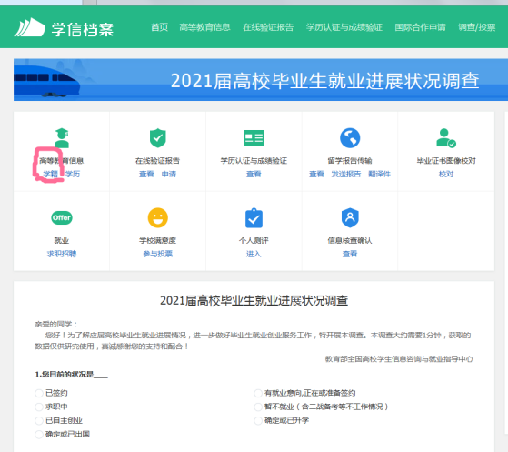 3、進(jìn)入后點(diǎn)擊:高等教育信息“學(xué)籍”