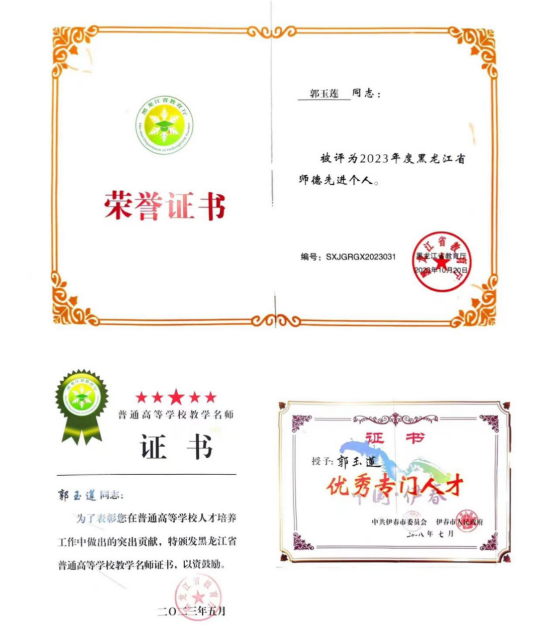 郭玉蓮老師牢記德為師之本的深刻道理,嚴(yán)格依法執(zhí)教,模范遵守家庭道德、職業(yè)道德和社會公德。她永遠(yuǎn)把工作放在第一位:無論單位什么時(shí)候需要她,她都在。在自己平凡的工作崗位上詮釋了責(zé)任與擔(dān)當(dāng)。她深入學(xué)習(xí)并模范遵守新時(shí)代教師職業(yè)行為十項(xiàng)準(zhǔn)則等師德規(guī)范,認(rèn)真參加師德集中學(xué)習(xí)教育專題活動(dòng)。在負(fù)責(zé)大創(chuàng)辦工作期間,2021年部門被推選為省級師德先進(jìn)集體候選單位,2023年獲評校先進(jìn)集體稱號。2023年她本人被評為全省師德先進(jìn)個(gè)人。