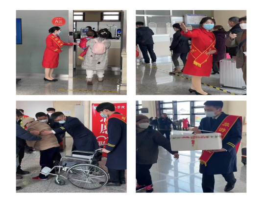 在機場,同學(xué)們與地服人員相互配合,積極做好現(xiàn)場秩序維護和服務(wù)工作,在值機區(qū)域、安檢待檢區(qū)域開展引導(dǎo)服務(wù)工作,通過合理分流、正確引導(dǎo),為旅客耐心答疑、主動服務(wù),幫助旅客快速使用自助設(shè)備辦理乘機手續(xù),協(xié)助旅客退改簽、過檢;為母嬰室的旅客及嬰幼兒提供溫暖的厚毛毯和暖寶寶,為老年人搬運行李等物品;在安檢候檢區(qū)積極宣傳安檢乘機常識,熱情接受旅客咨詢,協(xié)助老、弱、病、殘等特殊旅客提供乘機手續(xù)辦理、乘機引導(dǎo)、候機專屬等便利和差異化服務(wù),使旅客順利、快捷、安心出行提供服務(wù)。
