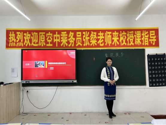 后疫情時代,隨著民航業(yè)的逐漸復(fù)蘇,民航業(yè)對空乘人員需求巨大,特別是綜合素質(zhì)較高的空乘人員。為了提高空中乘務(wù)專業(yè)職業(yè)技能人才的培養(yǎng)質(zhì)量,擴大社會認可度與影響力,為民航行業(yè)輸送更多高層次、高水準的人才;同時也為了更好地使學(xué)生具有較強崗位實踐能力、崗位專業(yè)綜合服務(wù)能力及崗位應(yīng)變能力和可持續(xù)發(fā)展能力,旅游商務(wù)學(xué)院邀請原海南航空空中乘務(wù)員張粲老師來校授課。