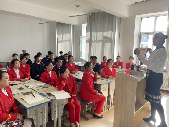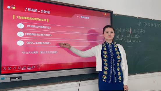 張粲老師立足民航業(yè)和旅游業(yè)的發(fā)展需要,以空中乘務(wù)服務(wù)崗位技能培養(yǎng)為導(dǎo)向,以培養(yǎng)學(xué)生客艙服務(wù)能力為核心,以客艙服務(wù)與緊急處置程序等真實工作任務(wù)為載體,深入淺出地為學(xué)生們講解了客艙服務(wù)、民航地面服務(wù)需要具備的專業(yè)知識。