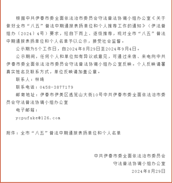 為深入學(xué)習(xí)貫徹黨的二十大精神,進(jìn)一步引導(dǎo)廣大青年成長為有理想、敢擔(dān)當(dāng)、能吃苦、肯奮斗的新時(shí)代好青年,發(fā)揮大學(xué)生普法志愿者作用,口腔醫(yī)學(xué)院積極組織學(xué)生參與全市普法工作。根據(jù)中共伊春市委全面依法治市委員會(huì)守法普法協(xié)調(diào)小組辦公室《關(guān)于做好全市“八五”普法中期通報(bào)表揚(yáng)單位和個(gè)人推薦工作的通知》(伊法普組辦〔2024〕4號(hào))要求,經(jīng)自下而上、逐級(jí)推薦,對全市“八五”普法中期優(yōu)秀單位和個(gè)人進(jìn)行通報(bào)表揚(yáng)。
