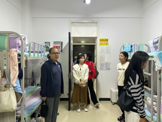 在這個金秋送爽的季節(jié)里,我們滿懷希望迎來了新學期的到來。在滿懷激情地投入學習與生活之前,有一項重要的工作不容忽視——開學返校寢室安全衛(wèi)生檢查。這不僅是對過去假期的告別,更是我們營造安全、健康、溫馨校園生活的第一步。9月1日晚,旅游商務(wù)學院副書記王寶才、輔導員劉佳、姚方杰、賀雙、王廷、劉婷、王宇童,一同深入學生公寓開展開學前安全衛(wèi)生檢查。