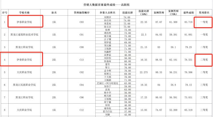 10月26日,由黑龍江省普通高等學(xué)校創(chuàng)新創(chuàng)業(yè)教育指導(dǎo)委員會主辦、哈爾濱商業(yè)大學(xué)承辦的2024第八屆一帶一路暨金磚國家技能發(fā)展與技術(shù)創(chuàng)新大賽之大數(shù)據(jù)分析應(yīng)用與決策賽項營銷大數(shù)據(jù)子賽項選拔賽(黑龍江省賽區(qū))圓滿落幕。伊春職業(yè)學(xué)院旅游商務(wù)學(xué)院派出2支參賽隊伍,經(jīng)過激烈的比拼,憑借卓越的表現(xiàn)和扎實的專業(yè)技能,分別取得省賽一等獎、二等獎的佳績。