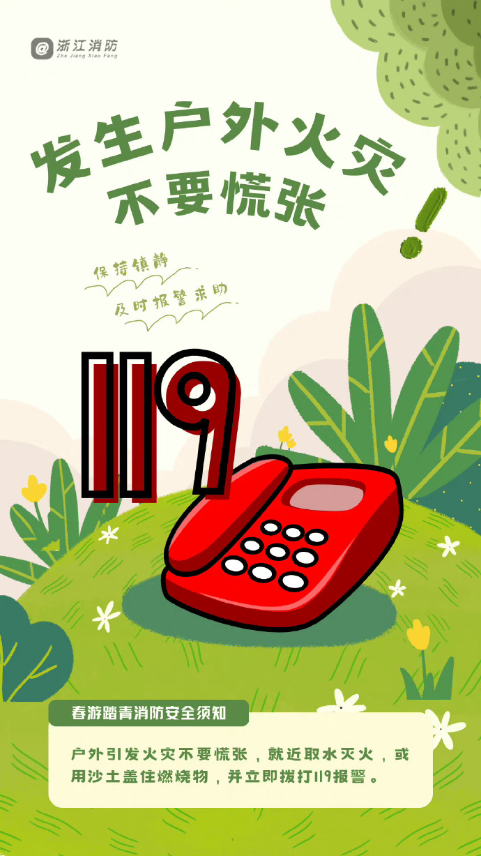春季風(fēng)大、天氣干燥,草木萌發(fā),消防安全工作不能忽視。溫馨提示:春暖花開(kāi)出門踏青,消防安全常記心中,這份安全提示請(qǐng)收好↓↓