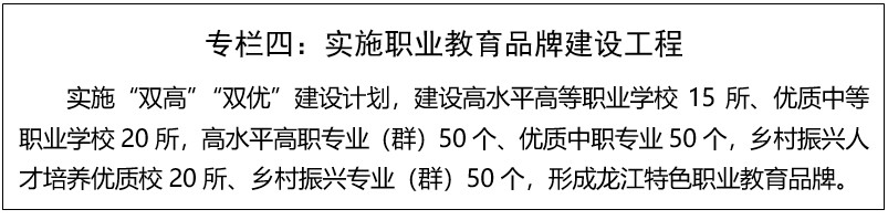 堅(jiān)持類型定位、特色發(fā)展。鞏固中等職業(yè)教育基礎(chǔ)地位,增強(qiáng)高等職業(yè)教育主體地位,培育職業(yè)本科教育引領(lǐng)地位,突出農(nóng)業(yè)職業(yè)教育辦學(xué)特色,落實(shí)“職教高考”制度,搭建人才成長立交橋,構(gòu)建龍江特色現(xiàn)代職業(yè)教育體系。
