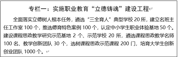 為深入貫徹落實(shí)習(xí)近平總書記對職業(yè)教育工作的重要指示、全國職業(yè)教育大會精神,加快構(gòu)建高質(zhì)量職業(yè)教育體系,根據(jù)《中共中央辦公廳、國務(wù)院辦公廳印發(fā)〈關(guān)于推動現(xiàn)代職業(yè)教育高質(zhì)量發(fā)展的意見〉的通知》《黑龍江省國民經(jīng)濟(jì)和社會發(fā)展第十四個五年規(guī)劃和二〇三五年遠(yuǎn)景目標(biāo)綱要》《黑龍江教育現(xiàn)代化2035》等文件要求,結(jié)合我省實(shí)際,制定本規(guī)劃。