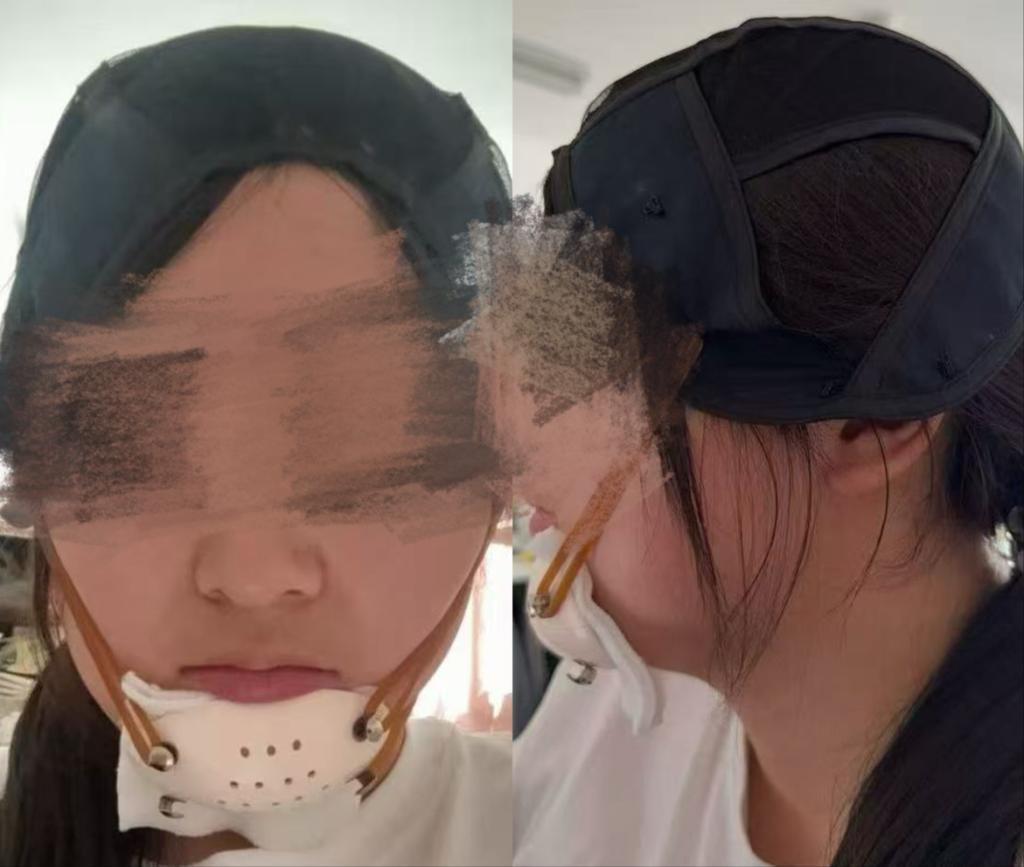 評估病情后,取坐位頭后仰,以雙手拇指輕壓下頜磨牙區(qū),進(jìn)行口內(nèi)手法復(fù)位。隨后用頭帽髁兜固定,作為手法復(fù)位后的下頜制定,限制張口不超過2cm。