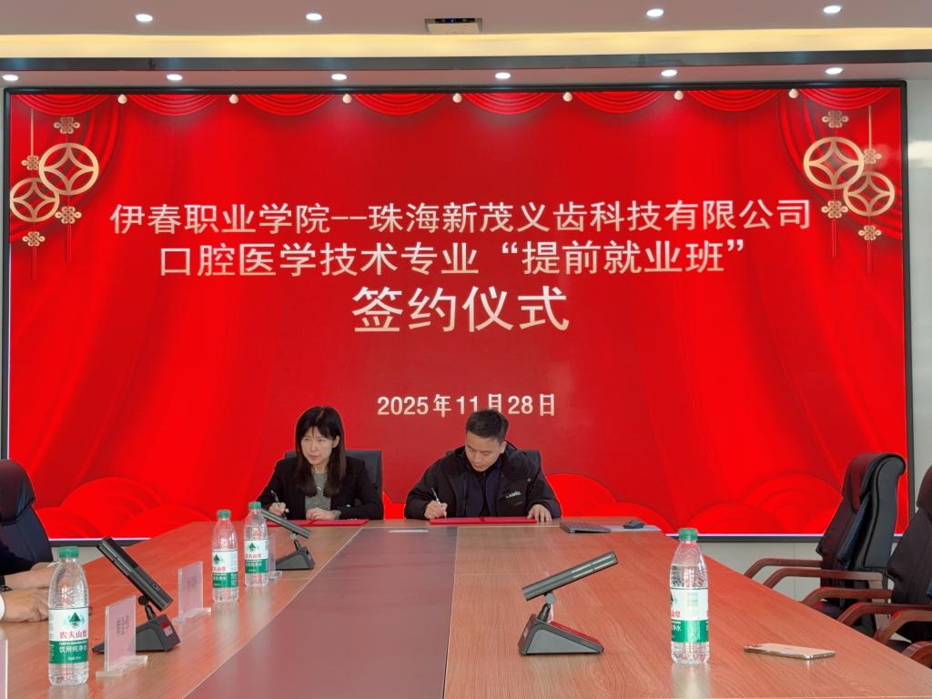 11月28日,伊春職業(yè)學(xué)院與珠海新茂義齒科技有限公司在醫(yī)學(xué)實(shí)訓(xùn)樓會(huì)議室隆重舉行了口腔醫(yī)學(xué)技術(shù)專業(yè)“提前就業(yè)班”簽約儀式。此舉旨在深化產(chǎn)教融合,共同培養(yǎng)高素質(zhì)技術(shù)技能人才。