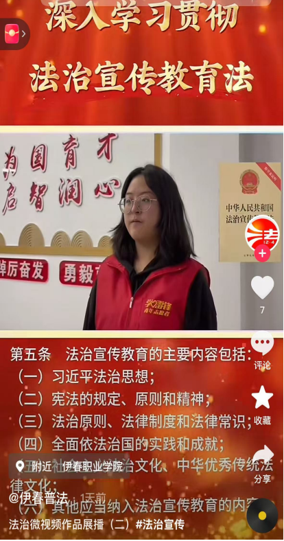 此次視頻展播,不僅有效傳播了《法治宣傳教育法》相關(guān)知識,更展示了當(dāng)代大學(xué)生積極參與法治建設(shè)、奉獻(xiàn)社會(huì)的精神風(fēng)貌,有助于在全社會(huì)營造尊法、學(xué)法、守法、用法的良好氛圍,為增強(qiáng)全民法治觀念、建設(shè)社會(huì)主義法治文化貢獻(xiàn)更多的青春智慧與力量。