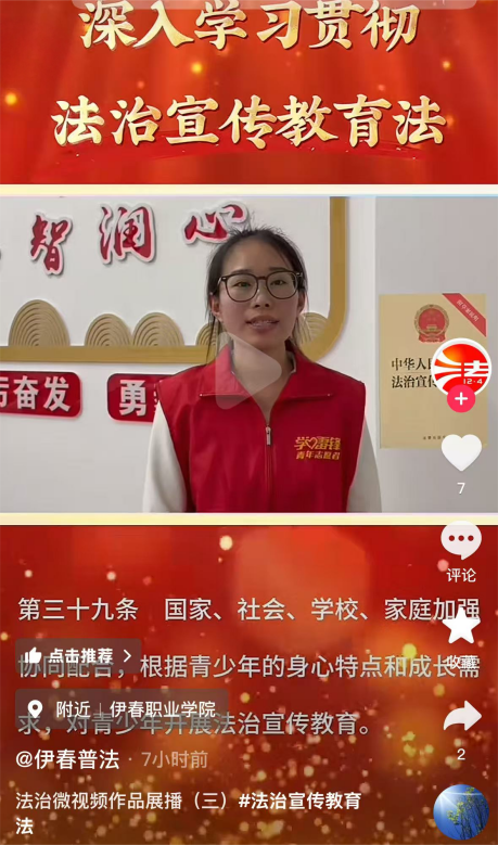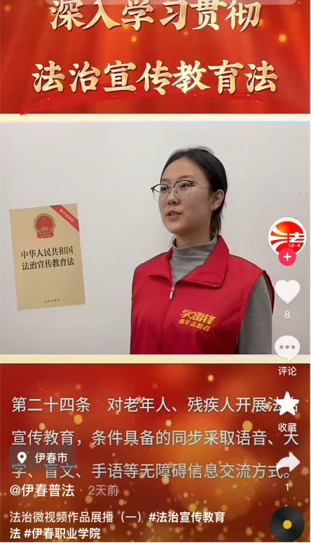 近日,口腔醫(yī)學(xué)院大學(xué)生普法志愿服務(wù)隊(duì)精心策劃拍攝的系列普法宣傳視頻,正式在“伊春普法”官方抖音賬號上線展播。志愿者們以生動(dòng)活潑的形式向社會(huì)公眾宣傳解讀新近出臺的《中華人民共和國法治宣傳教育法》,開啟了校園普法與新媒體融合創(chuàng)新的有益嘗試。