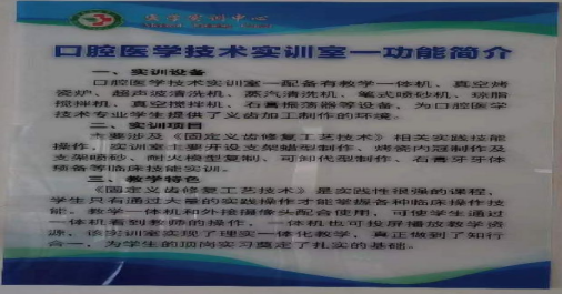 口腔醫(yī)學技術(shù)實訓室配有教學一體機、真空烤瓷爐、超聲波清洗機、蒸汽清洗機、筆式噴砂機、瓊脂攪拌機、真空攪拌機、石膏振蕩器等設(shè)備,為口腔醫(yī)學技術(shù)專業(yè)學生提供了義齒加工制作的環(huán)境。