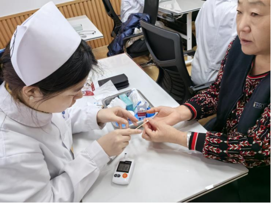 此次活動中,老年照護(hù)服務(wù)隊(duì)的師生們充分發(fā)揮專業(yè)優(yōu)勢,為社區(qū)老人提供了一系列貼心服務(wù)。服務(wù)隊(duì)在社區(qū)活動中心設(shè)立了健康檢測點(diǎn),免費(fèi)為老人進(jìn)行血壓、血糖、骨密度等基礎(chǔ)健康指標(biāo)的測量,并根據(jù)測量結(jié)果給予個性化的健康指導(dǎo)。許多老人在得知自己的身體指標(biāo)后,紛紛對服務(wù)隊(duì)表示感謝。李爺爺說道:“平時自己很少有機(jī)會專門去檢查身體,這次在社區(qū)就能享受到這樣的服務(wù),真的太方便了?!?/span>