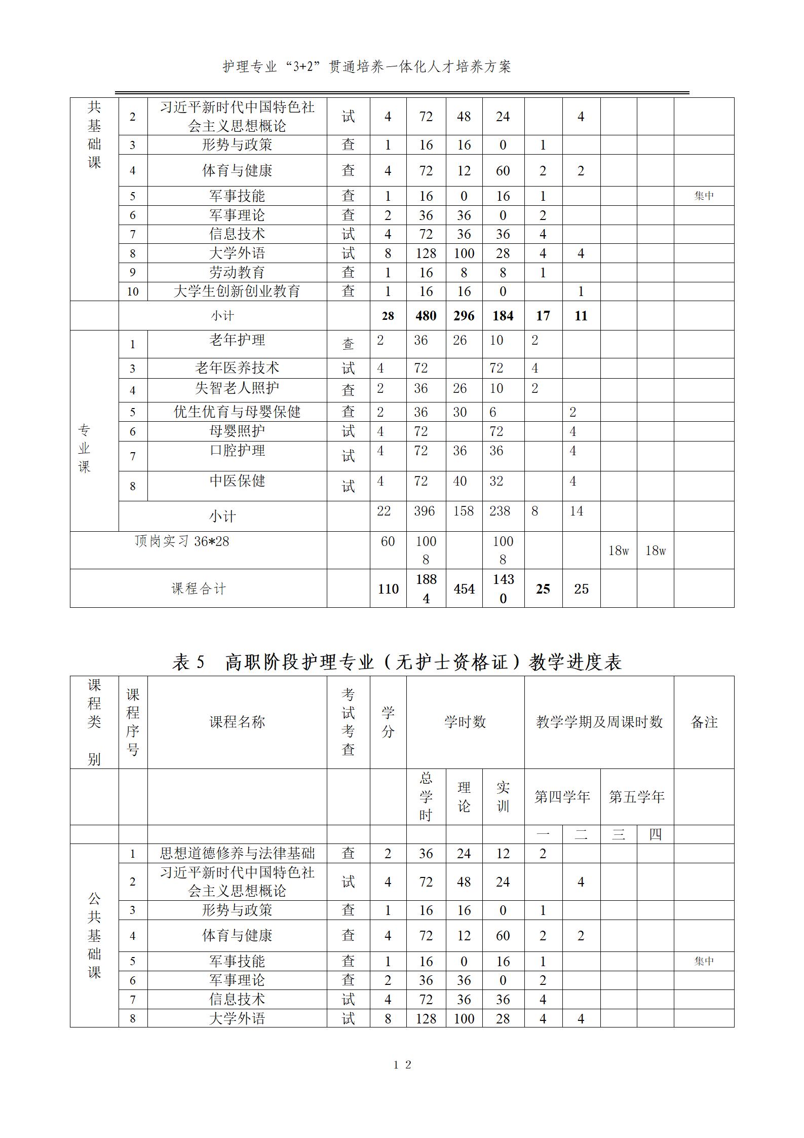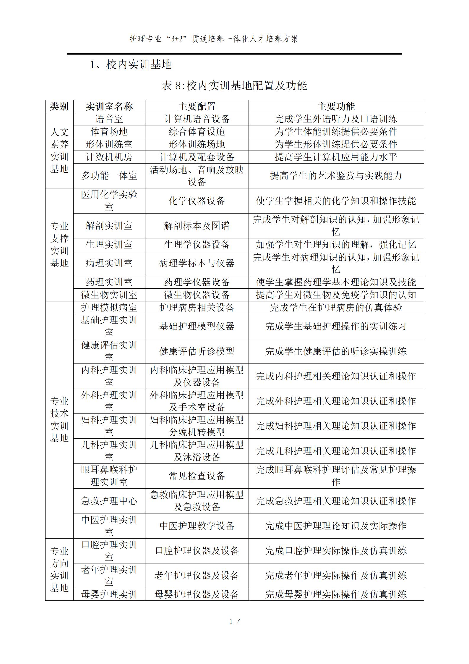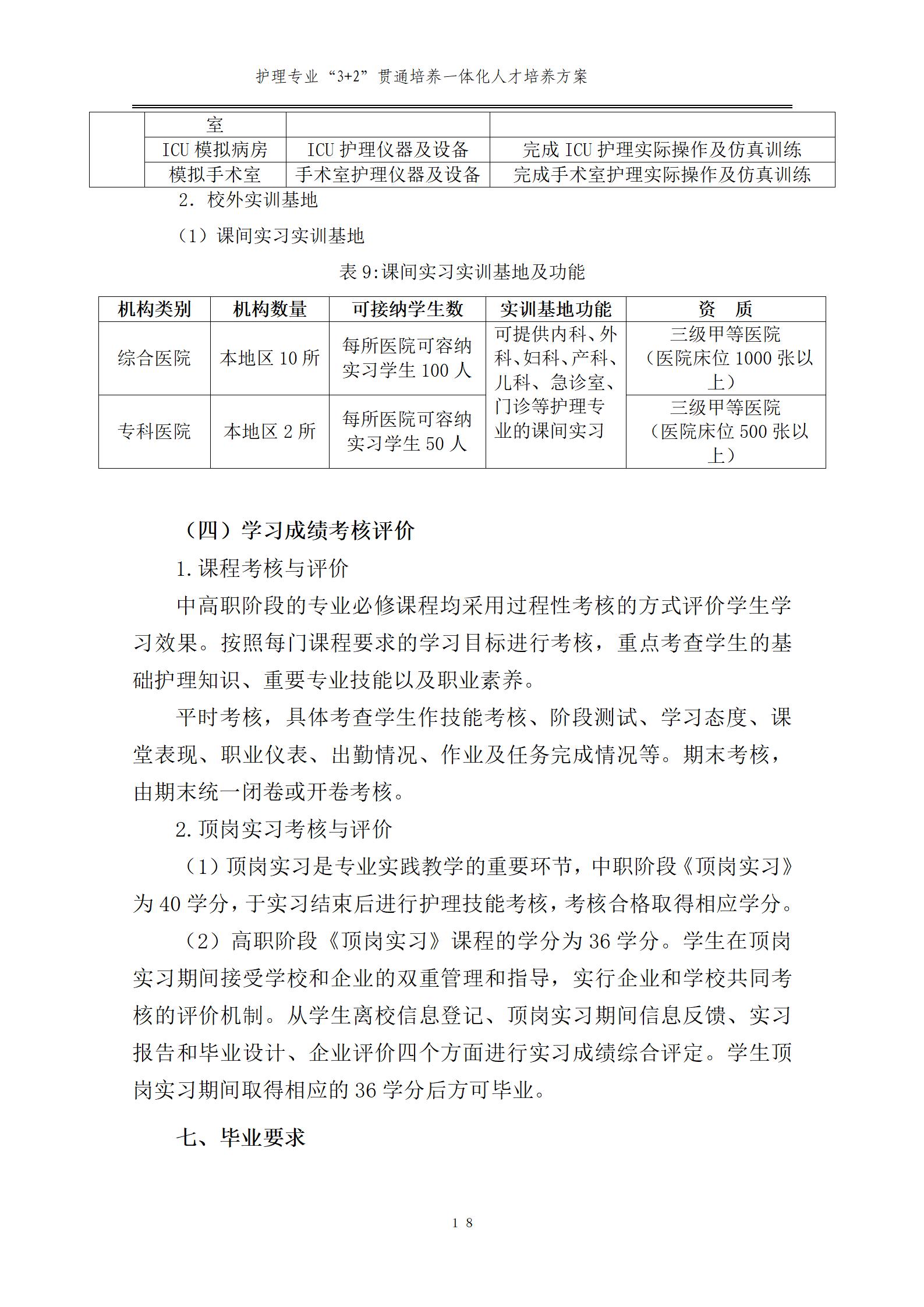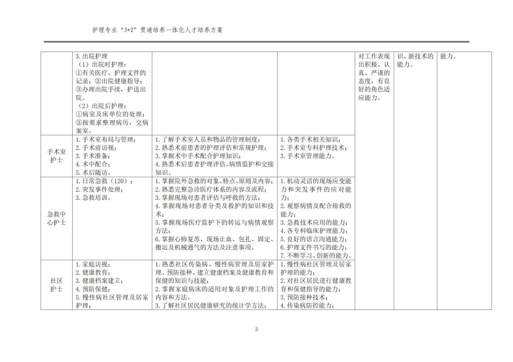 護(hù)理專業(yè)一體化人才培養(yǎng)方案